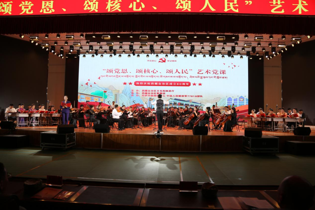 六月的拉萨已是烈日炎炎,纵然骄阳似火也无法阻挡西藏自治区歌舞团交响乐团演奏家们的热情和激动。“看着交响乐团的演出、听着主持人介绍中国共产党的光辉历程,观众们对这些耳熟能详的歌曲有了更深刻的认识。”小提琴演奏家罗雪莱如是说。恰逢西藏自治区成立60周年与中国人民抗日战争暨世界反法西斯战争胜利80周年的历史交汇点,一场融合艺术感染力与思想深度的党课实践正在雪域高原拉开帷幕。