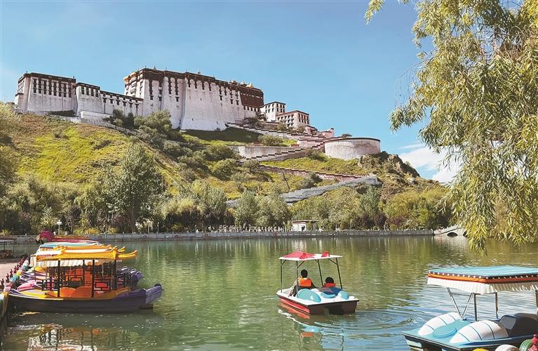 市民游客在宗角禄康公园泛舟游玩。记者 白玛泽旺 唐斌 摄