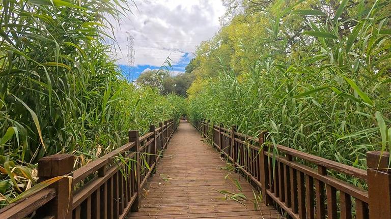 每天清晨和傍晚,拉鲁湿地的木栈道上总是热闹的。63岁的边巴次仁大叔几乎天天来散步,看着动物们在芦苇丛中嬉戏,远处布达拉宫熠熠生辉,他总忍不住感叹:“以前这里有些地方是烂泥塘,现在水更清、鸟更多,呼吸着湿润的空气,就是我们最平常的幸福。”退休教师达瓦常带着孙子来喂候鸟,孩子兴奋地数着黑颈鹤的数量,达瓦则回忆着:“小时候这里只是城郊的荒滩,如今成了国际认可的生态宝地,看着真让人高兴。”湿地里的水生植物和微生物还能过滤降解污染物,让流过的水变得更干净,为城市水系提供了源源不断的清洁水源。