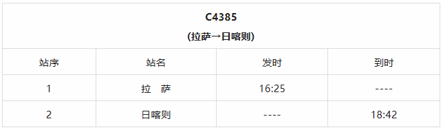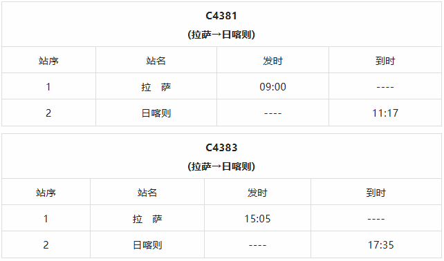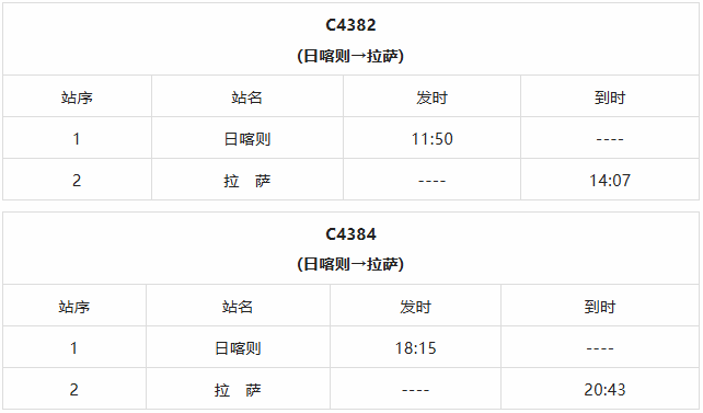 2025年12月31日至2026年1月25日日喀则至拉萨间加开C4382、C4384次临时动车组旅客列车。