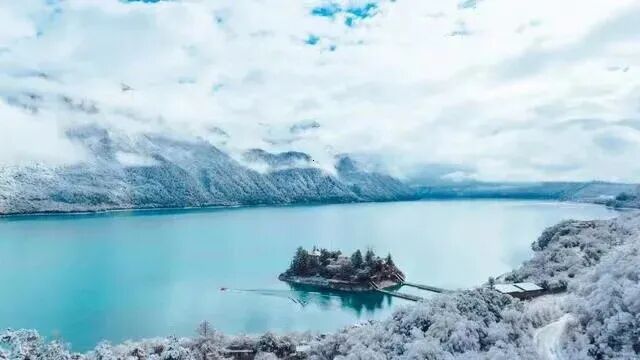 与西藏大多湖泊不同,巴松措两岸的山顶上是终年不化的积雪,山腰上是茂密的原始森林。冬日里,两岸雪山和森林倒映在碧绿的湖面上,宛若童话世界。