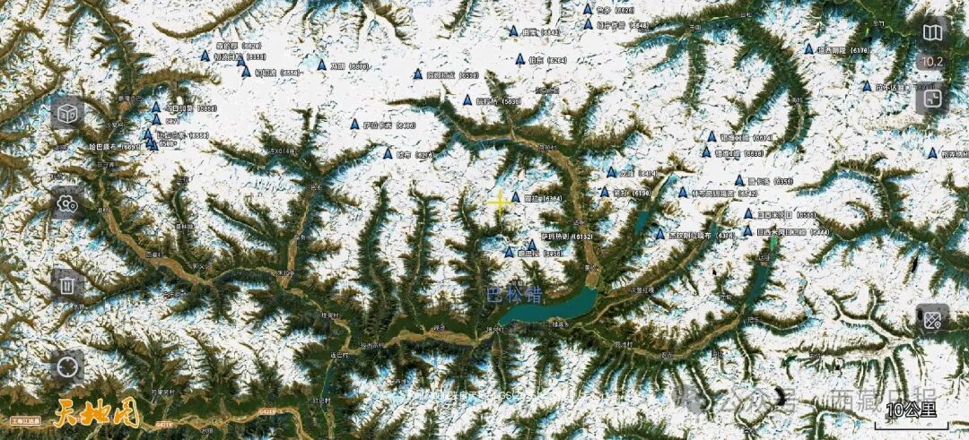 图为“大巴松错”周边部分海拔6000+山峰示意。