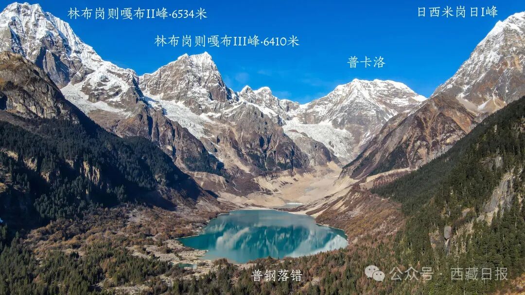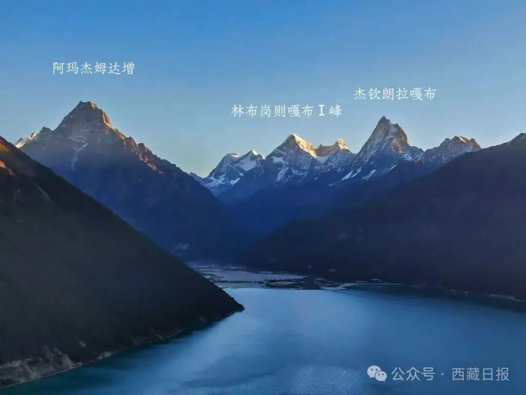 被称为“燃烧的火焰”的杰钦朗拉嘎布(海拔6316米),是巴松错湖区的标志性雪峰。它与阿玛杰姆达增(又称“洛起热”,海拔5904米)和林布岗则嘎布1峰(海拔6542米),构成“巴松错三塔”,很容易被看到。