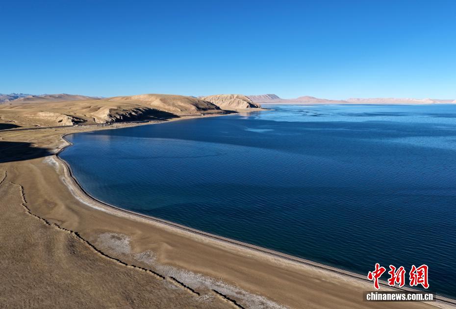 12月20日,航拍冬日色林错。色林错位于藏北那曲,是西藏第一大湖泊,湖面海拔4530米,是青藏高原形成过程中产生的一个构造湖。冬日,阳光照耀下,湖泊景色壮丽。图为色林错景色。中新社记者 李林 摄(无人机照片)