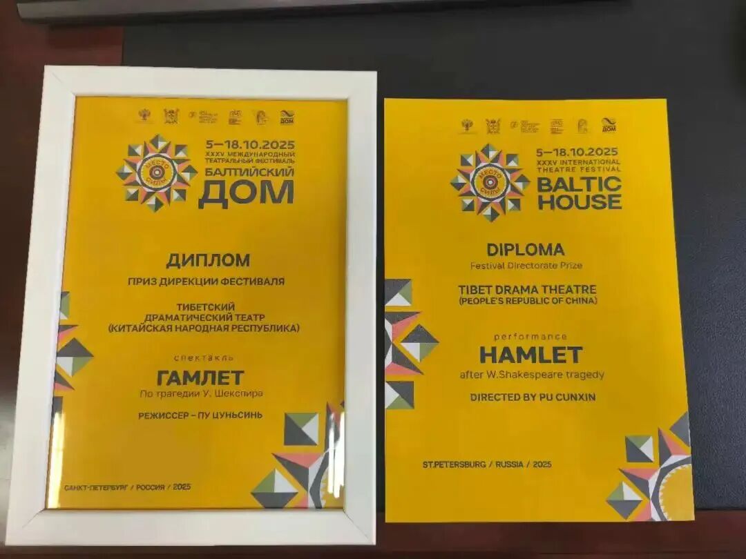 由濮存昕执导、西藏自治区话剧团演出的话剧《哈姆雷特》,在第三十五届“波罗的海之家”国际戏剧节中,荣获“波罗的海之家”国际戏剧节最佳剧目奖。