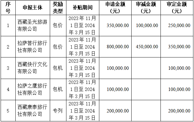 关于第六轮“冬游西藏”市场促进活动奖励结果核实情况补充审核公示