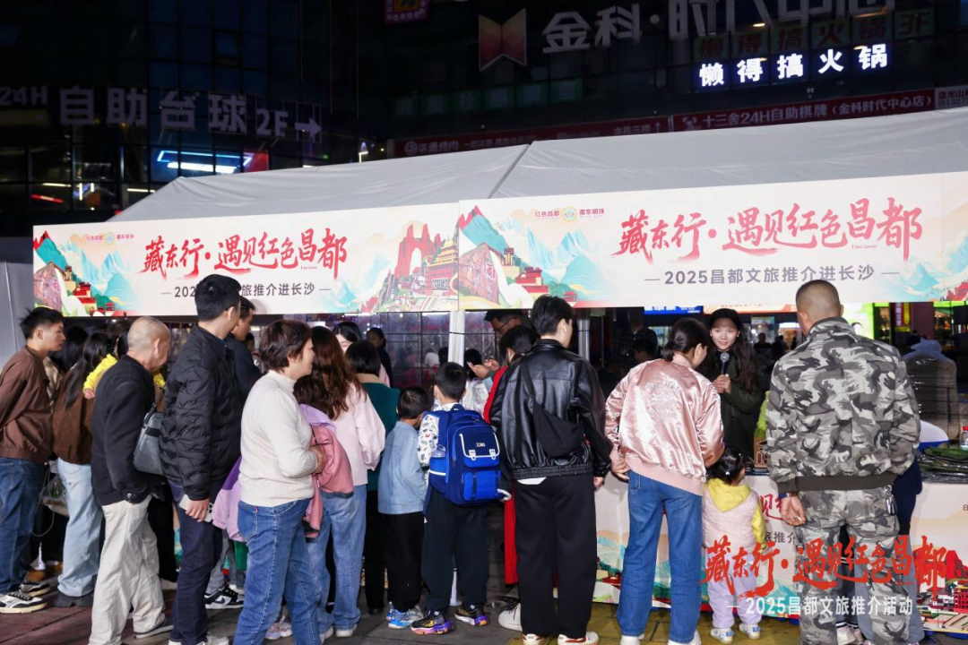 当晚,推介活动走进长沙金科·时代中心社区,将藏东风情送至市民“家门口”。现场围绕昌都自然风光与红色文化设置主题展区,通过视频轮播、特色文创展示及精品线路推介等形式,生动呈现藏东地区独具魅力的旅游资源。工作人员主动发放宣传资料,耐心解答市民关心的出行交通、最佳旅游季节等实用信息,展台前吸引众多居民驻足咨询。不少市民在深入了解后表现出浓厚兴趣,纷纷表示计划未来亲自前往,一睹“藏东明珠”风采。