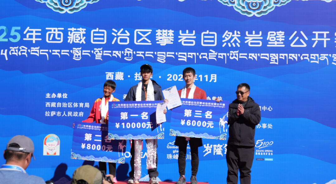 在颁奖仪式上,赛事裁判长仁青拉姆女士公布了比赛成绩。青少年女子组、青少年男子组、公开组女子、公开组男子、专业组女子及专业组男子的获奖选手依次上台领奖。