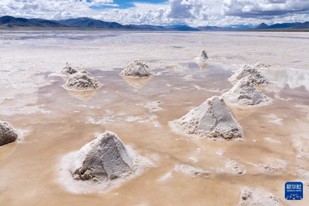 7月20日拍摄的革吉县牧民堆积的盐。新华社记者 旦增尼玛曲珠 摄