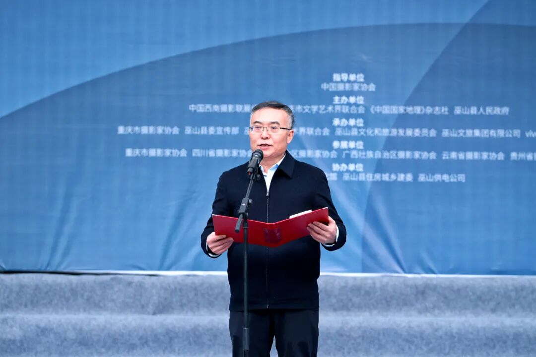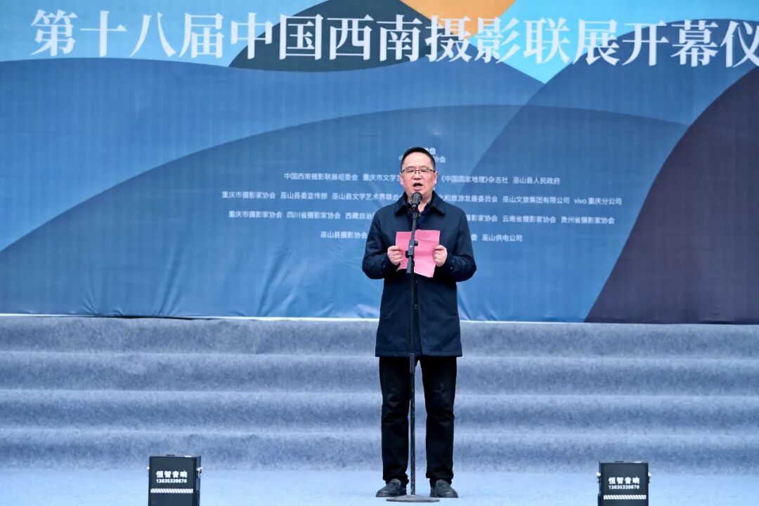 开幕式当天,中国摄影家协会副主席、企业家摄影协会主席王琛宣布开幕,中国摄影家协会第九届副主席柳军;贵州省文联党组成员、副主席朱宏;云南省文联党组成员、副主席缪开和;广西壮族自治区文联一级巡视员、副主席刘水玉;西藏自治区文联党组成员、副主席、秘书长李雪艳;四川省文联党组成员、二级巡视员、秘书长仲晓玲;重庆市文联党组成员、副主席张泰春;云南省摄影家协会主席鲍利辉;西藏自治区林芝市委宣传部常务副部长、西藏摄影家协会主席扎西洛布;四川省摄影家协会主席贾跃红;重庆市文联副主席、重庆市摄影家协会主席鞠芝勤;中国摄影家协会会员工作处处长成丕德;中国摄影家协会办公室主任胡颖;vivo总部高级行业营销经理徐喜乐;巫山县政协主席黄勇;巫山县政协副主席王柏林;还有来自浙江、辽宁、湖北以及西南六省(区、市)的摄影家协会代表,以及巫山县委办公室、巫山县政府办公室、巫山县委宣传部、巫山县文化旅游委、巫山文旅集团等单位负责人出席了开幕式;开幕式由巫山县委常委、县政府副县长刘波主持。