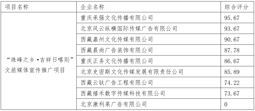 “珠峰之乡·吉祥日喀则”文旅媒体宣传推广项目公开比选结果公示