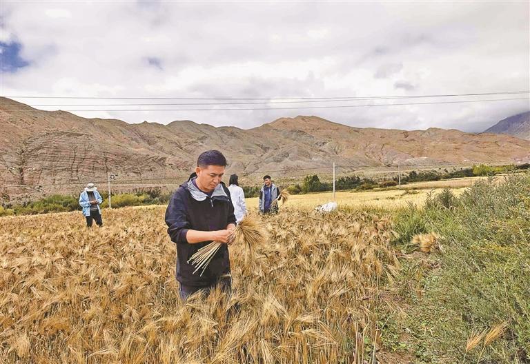 图为自治区农牧科学院农业研究所科技人员在错那市觉拉乡进行优异品种选穗工作。(图片由农业研究所提供)
