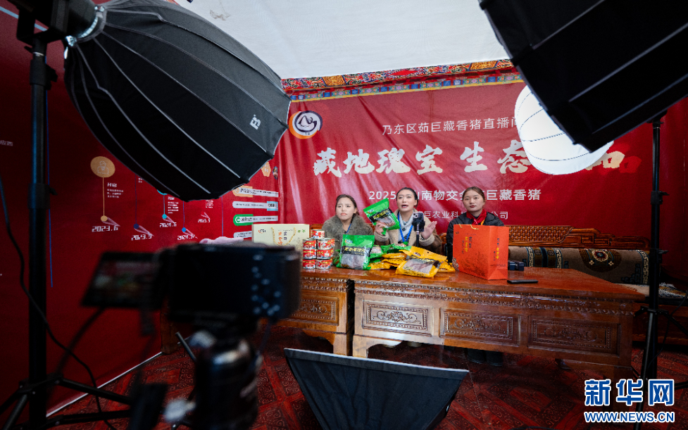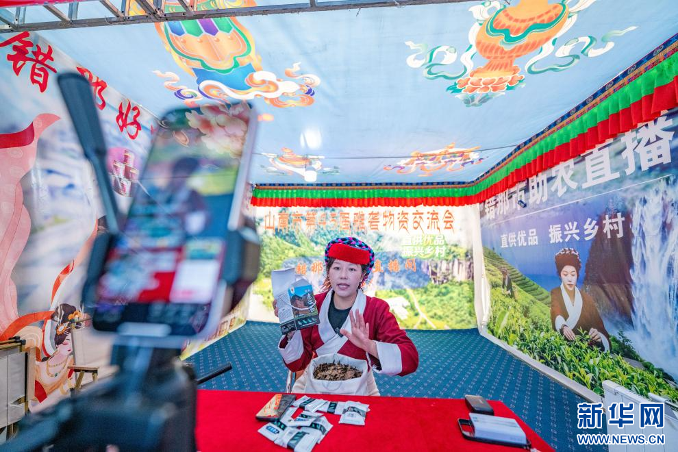 12月1日拍摄的第45届雅砻物资交流会电商直播主场。新华网 旦增努布 摄
