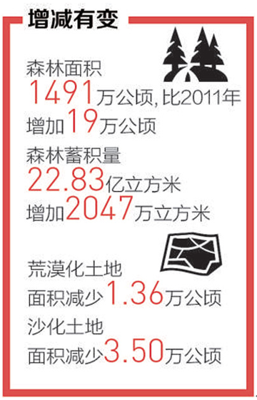 数据显示,目前西藏林地面积1798.19万公顷,比2011年增加14万公顷;森林面积1491万公顷,比2011年增加19万公顷;森林覆盖率12.14%,比2011年提高0.16个百分点;森林蓄积量22.83亿立方米,增加2047万立方米,实现了森林面积和蓄积量“双增”目标。与此同时,西藏荒漠化土地面积减少1.36万公顷,沙化土地面积减少3.50万公顷,全区荒漠化和沙化土地面积呈减少趋势。
