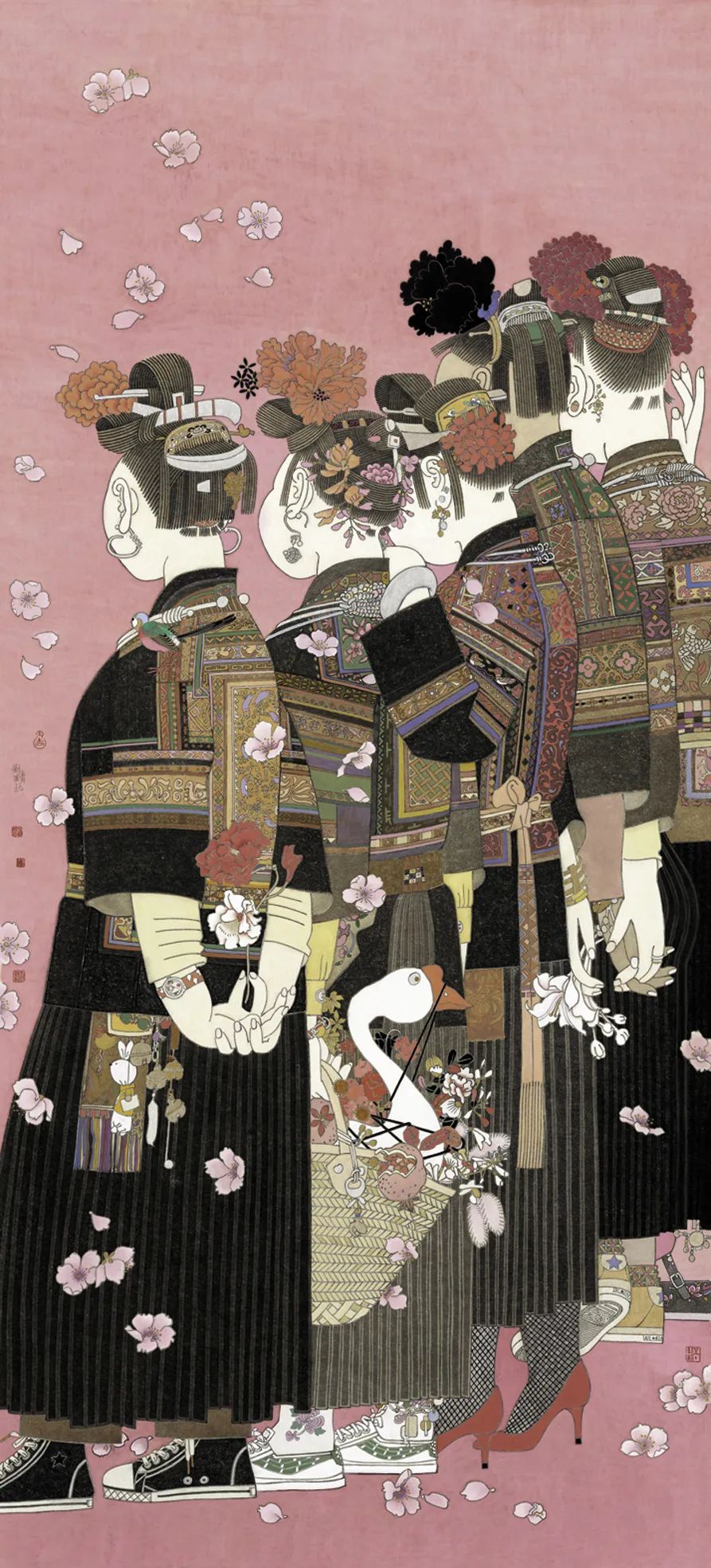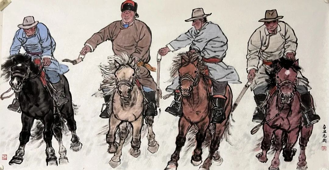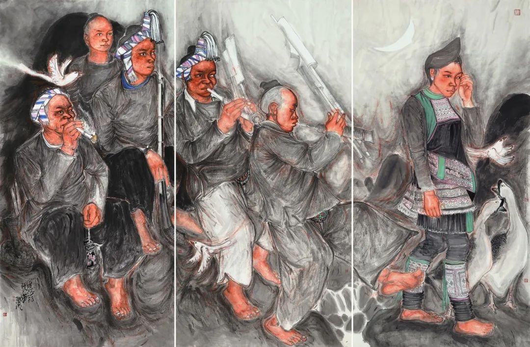 此次参展的10位艺术家中,既有70多岁的资深画家,也有享誉画坛的创作中坚,有汉族、彝族、蒙古族、朝鲜族,参展作者的民族构成生动呼应了“中华民族一家亲”的展览主题。他们长期关注民族地区的历史文化、现实生活与社会发展,以当代的视野和富有新意的艺术语言,创作出大量艺术精品,描绘了民族团结、亲如一家的时代画卷。展品中,既有豪放的粗阔写意,也有严谨的工整细绘,实现了语言与技法的统一,传达出感人的艺术魅力。
