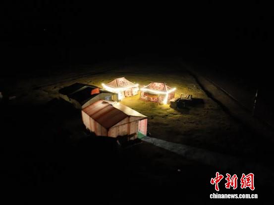 游牧点帐篷在夜晚发出光亮。毛一丰 供图