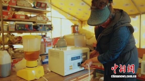 牧民使用“移动式光储一体微电站”制作酥油茶。毛一丰 供图
