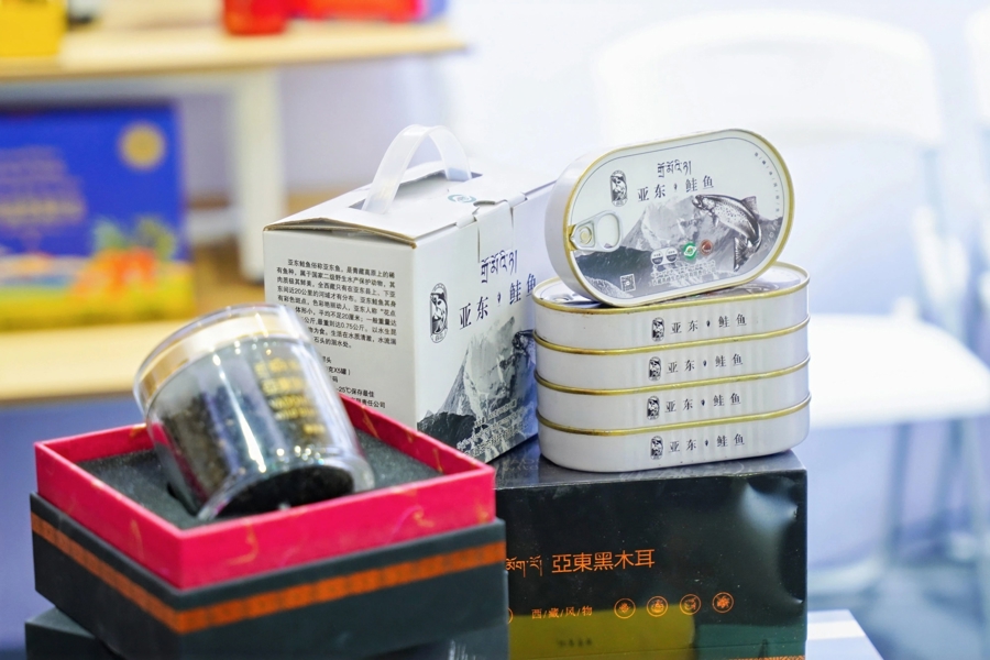 在此次展销会现场,游客可以购买到来自高原的亚东鲑鱼罐头。这一巴掌大的罐头可谓来之不易。亚东鲑鱼是中国乃至全世界唯一一种能在高原冷水环境下生存的鲑鱼,对生存环境要求极高,必须在无污染且不含沙土的山间活水中才能生存。据西藏日喀则中境农业董事长杨杨介绍,野生的亚东鲑鱼生长速度慢,又因为缺少技术,早前难以实现人工繁育。