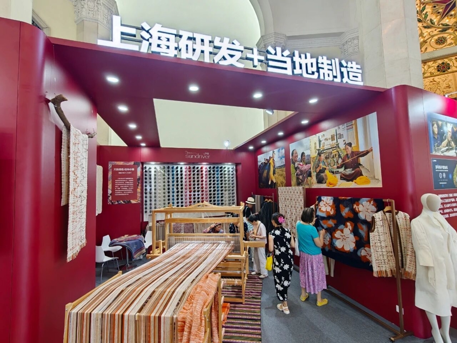 同时,沙涓还通过原材料融合、手工艺融合来实现创新。据郭秀玲介绍,沙涓曾尝试以青海的牦牛绒为氆氇的原材料。今年,沙涓又将云南傣族的织锦工艺与氆氇相结合,在“设计上海”2025首发。郭秀玲表示,这实际上是将上海对口支援的各个地方的特色融合起来。