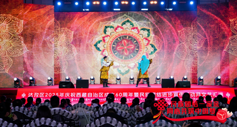 为贯彻落实习近平总书记关于加强和改进民族工作的重要思想和中央民族工作会议精神,继承和弘扬中华民族传统文化,庆祝西藏自治区成立60周年。由中共达孜区委员会、达孜区政府主办,达孜区委统战部承办,西藏虎峰文化旅游投资开发有限公司协办的以“民族团结一家亲 同心共筑中国梦”为主题的庆祝西藏自治区成立60周年暨民族团结进步宣传活动月文艺汇演于9月17日成功举办。