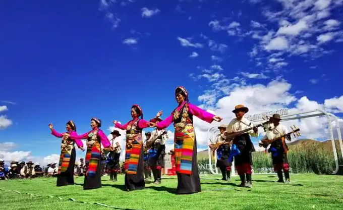 西藏是我国重要的文化旅游目的地。图为牧民们在表演。摄影/章轲