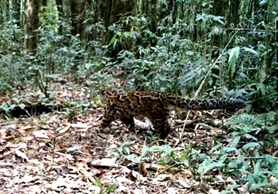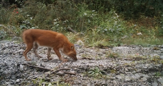 “根据最新的国家野生动物保护名录,此次拍摄到的国家一级重点保护动物包括不丹羚牛、云豹、金猫、大灵猫、豺、喜马拉雅鬣羚、赤斑羚、棕尾虹雉等8种。”赵翔介绍,“此次调查共拍摄到云豹26次,而且在多个样点均拍摄到不同行为的影像,表明墨脱区域的森林为云豹提供了充足的栖息地和食物来源;共拍摄到金猫65次,并且记录到了花斑型、麻褐色型、黑色型、灰色型、红棕色型等至少5种色型的个体。唯一的国家一级保护犬科动物豺,拍摄次数达到52次,且多为群体活动。”