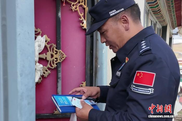 图为嘎色上门为村民送身份证。日喀则市边境管理支队供图