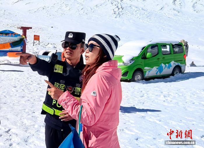 图为珠峰边境派出所民警为游客咨询提供帮助指引。索朗怕加 摄
