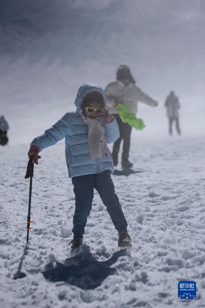10月28日,7岁的康徐希贝和家人一起参加洛堆峰登山体验活动。新华社记者 孙瑞博 摄