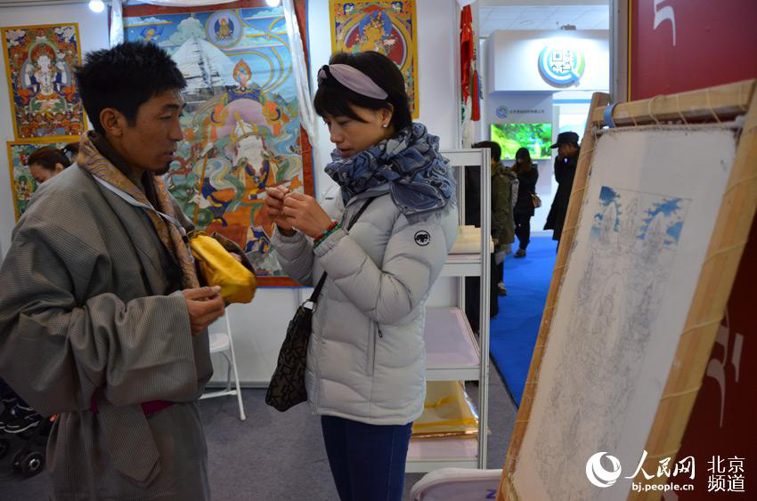 北京对口支援地区特色产品展销会上,西藏风情文化亮相其中。人民网尹星云 摄