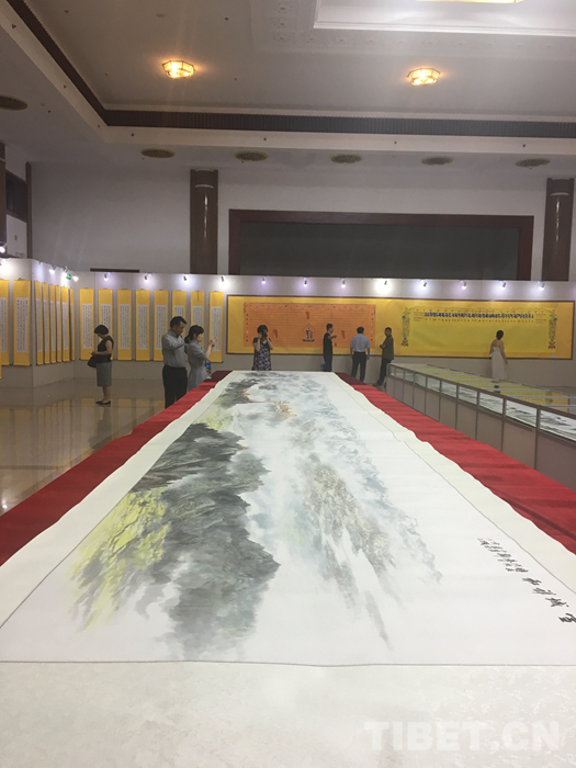 在该展厅展出的156幅藏译汉和11幅藏文书法作品,展现了历世班禅的传记,重点阐述历世班禅弘扬佛法,护国利民,维护中华民族团结和祖国统一作出的杰出贡献。据这位负责人介绍:“里面的每一句话都来自真实的历史。此次用书画艺术的形式来阐释中国西藏的有关历史,意义非常重大。不仅展示了优秀的汉藏书法艺术,也表达了我们中华民族文化的多样性、同一性、互补性的意义,明明白白地展示西藏历史,让国人珍视西藏的历史,也让世界更加了解中华民族悠久璀璨的文化和历史。”