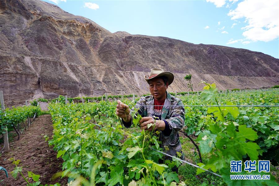在西藏昌都市芒康县木许乡阿东村,村民在葡萄园里忙碌(5月6日摄)。新华社记者 詹彦 摄