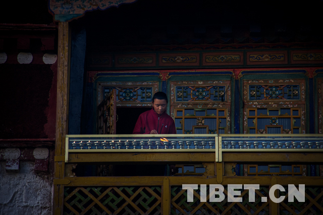 12月12日,藏历十月二十五,这一天是藏传佛教格鲁派一年一度的传统宗教活动—“甘丹昂确”,又称“燃灯日”,是纪念藏传佛教格鲁派创始人宗喀巴大师圆寂成佛的日子。图为年轻僧人在点灯。摄影:赵耀