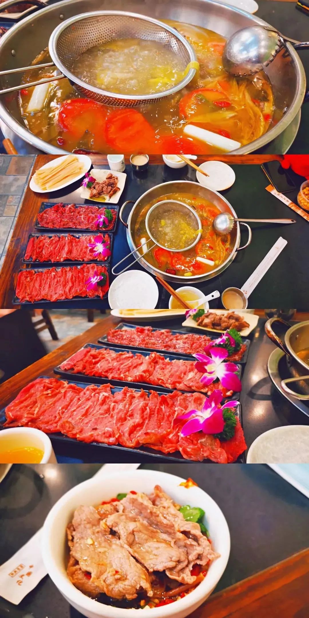 店里的牦牛肉非常地道,招牌酸汤锅底很绝,酸酸辣辣的特别开胃。店员很热情,上菜的速度也比较快,团购2-3人餐一般来说两个人是吃不完的,分量比较多。