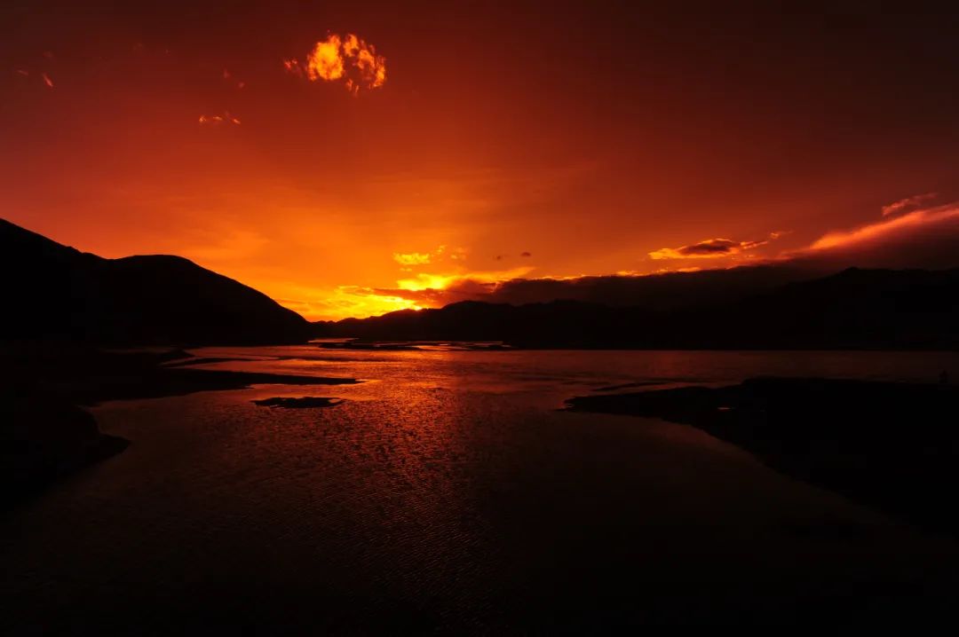 拉萨市民特别热爱这条河,每到周末或节假日,成群结对的拉萨人来到河的沿岸过林卡。这里的日落也是一绝,夕阳像一个红色的气球在晚霞中悬浮着,落日下的黄昏倒影在湖面,远处的山峦一点点沉溺于黑暗之中,鸭蛋黄般浑圆的太阳最后化为几抹残阳跌落昭昭星野。
