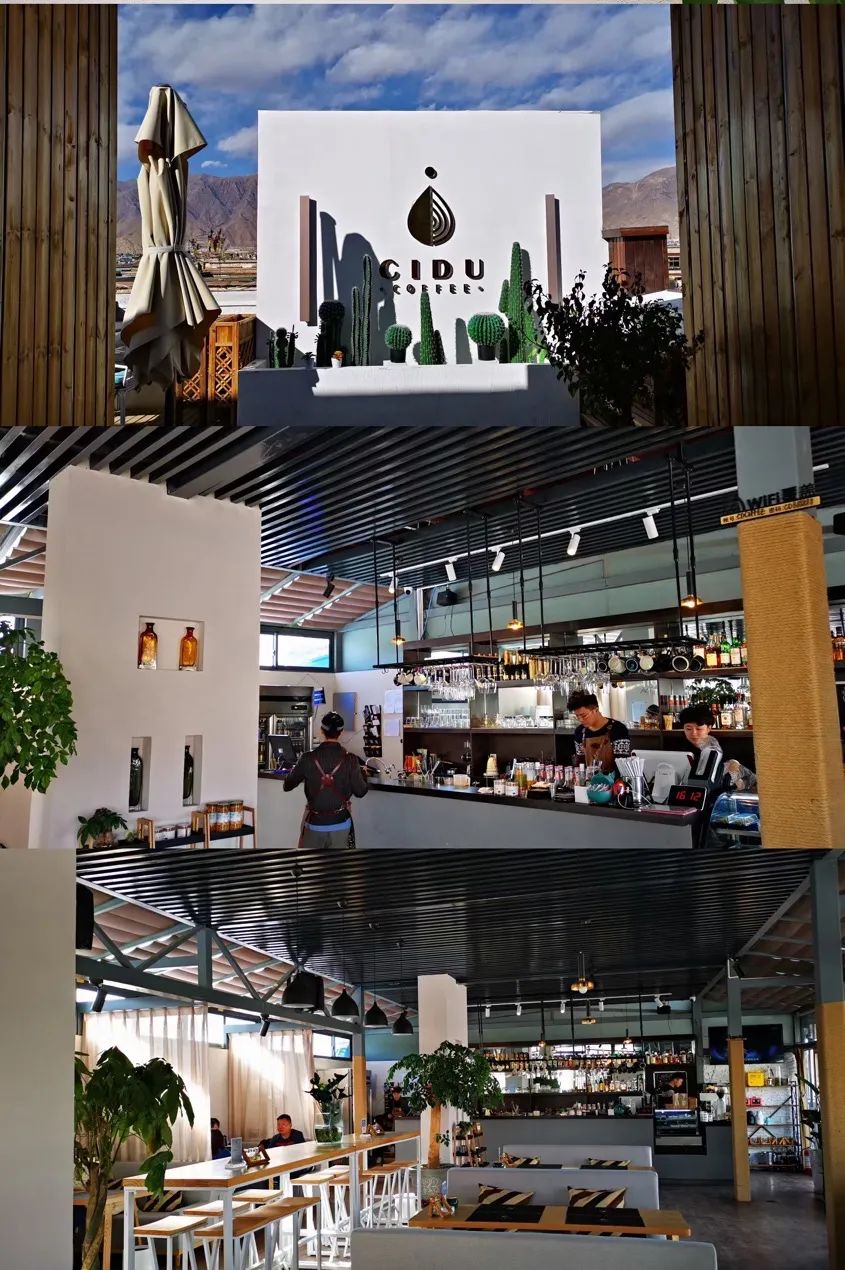 慈渡紧邻八廓街,位于慈渡酒店的6楼,这是拥有布达拉宫景致的露台咖啡厅,可以远眺群山与布达拉宫,装修主要以白墙绿植为主调,满满的ins风格。在日光城,最惬意的事情莫过于看着远处的风景晒太阳了,把烦躁的工作抛诸脑后,度过一个愉快的午后。