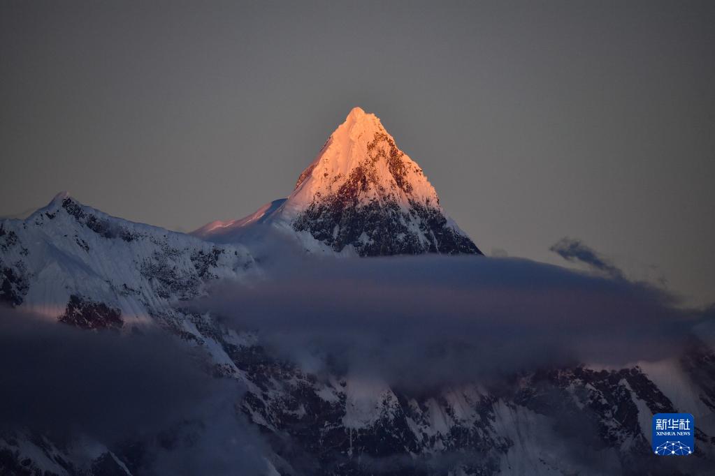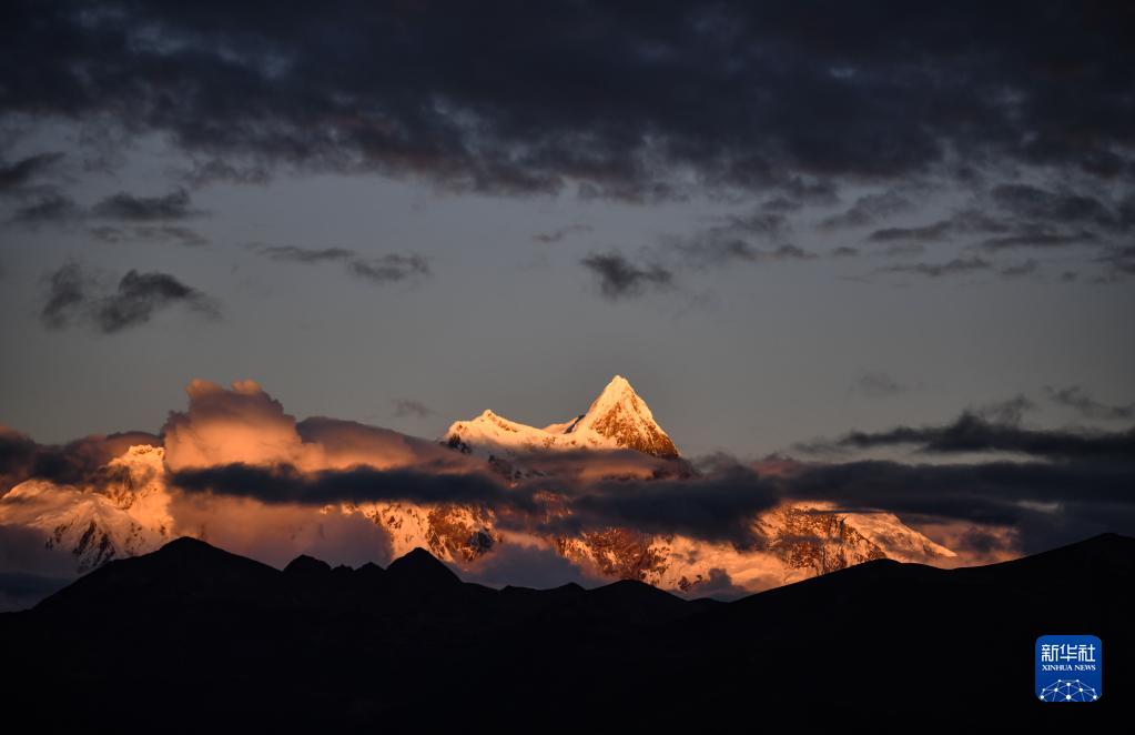 南迦巴瓦峰是西藏林芝市最高峰,位于喜马拉雅山脉东端,巨大的三角形峰体终年积雪。