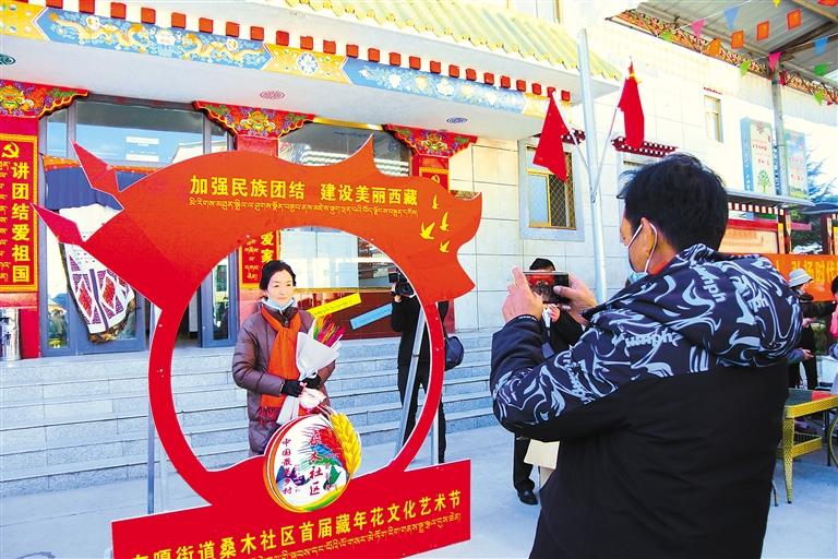 记者在现场看到,艺术节上不仅可以欣赏精彩的文艺演出,还能拿到西藏书法家现场书写的书法作品,桑木社区还准备了藏年花纪念品。收到纪念品后,不仅能在现场与藏年花合影,还能近距离观看藏年花染色流程,让参与活动的人们以不同视角、不同层面,更深入了解非物质文化遗产藏年花的特色。整个现场气氛热烈,社区大院内充满了欢声笑语。