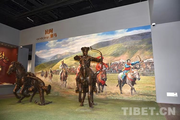 图为西藏博物馆《离太阳最近的人——西藏民俗文化展》展现的民间赛马艺术 摄影:王媛媛