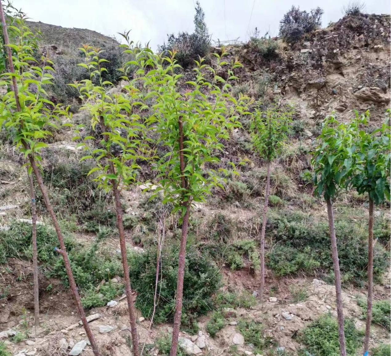 旺堆是西藏山南加查人,从小的梦想是让家乡长满树。2013年,他开办了一家苗圃,开始种桃树。“我们当地山上有一些野生桃树,我想应该适合高海拔环境,就找了一些种子育苗,但一开始效果并不理想。后来,经过专家指导,育苗成功。”旺堆说。