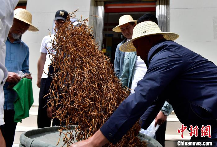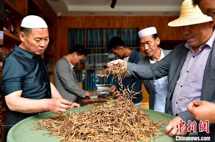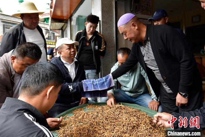 冬虫夏草(简称“虫草”)是一种名贵中药材,素有“软黄金”之称。随着虫草的大批量上市,在拉萨最大的虫草交易市场清真寺虫草交易点,虫草商们正忙着交易。图为7月16日,虫草商们在挑选虫草。中新社记者 李林 摄