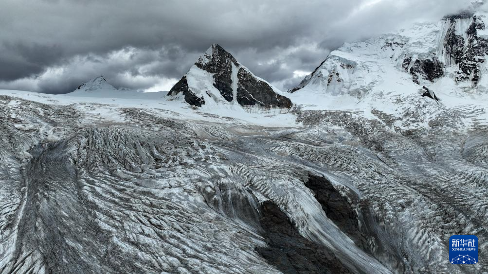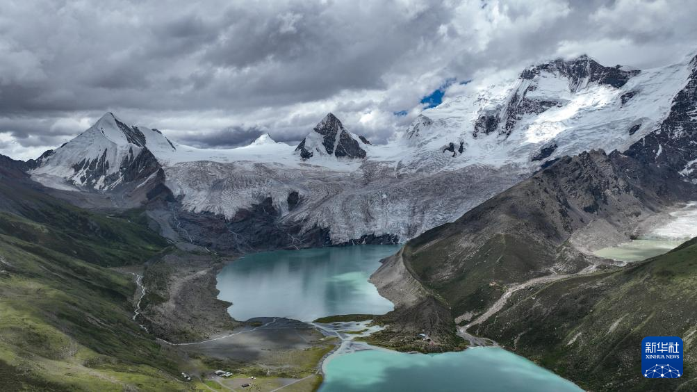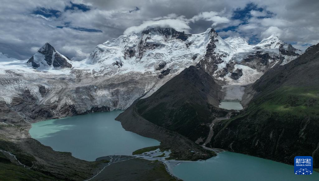 7月19日拍摄的萨普雪山及延伸的冰川(无人机照片)。新华社记者 晋美多吉 摄