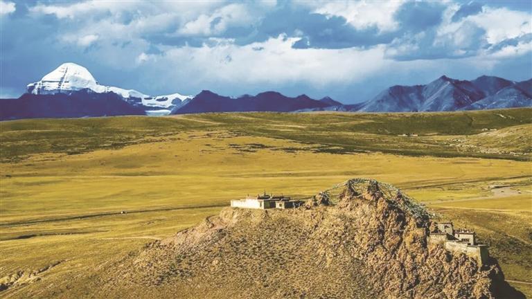 初冬的冈仁波齐,少了几分拥嚷的喧嚣,多了几分深沉的静穆,金字塔状的峰顶覆盖着终年不化的积雪,在阳光下闪烁着清冷而神圣的光。而最动人的,是山脚下那片被朔风浸染的金色草甸——像是大自然特意为神山铺就的暖黄色地毯,柔软、辽阔,与山顶的冷峻白雪形成温柔的对比。你可以在清晨时分静坐坡上,等待第一缕阳光点亮山尖,也可以在傍晚时分,看夕阳把整片草场染成琥珀色。那一刻你会明白,山不只是一座山,它是一种存在、一种守护,一种让你放下所有浮躁的、巨大的安宁。