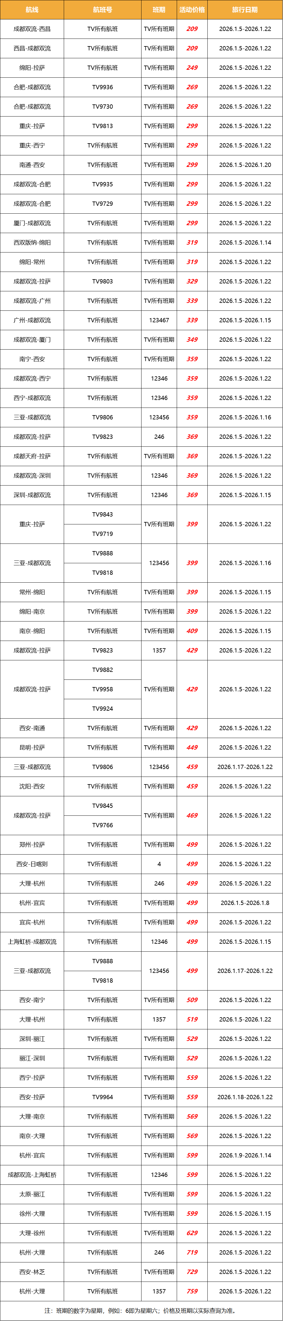 游客注意!西藏航空特价机票,飞拉萨低至249元
