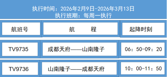 据民航西藏自治区管理局消息,为优化航班运行保障,更好满足春运期间旅客出行需求,根据航空公司航班计划安排,山南隆子机场往返成都天府国际机场航班班期与时刻现已进行调整。