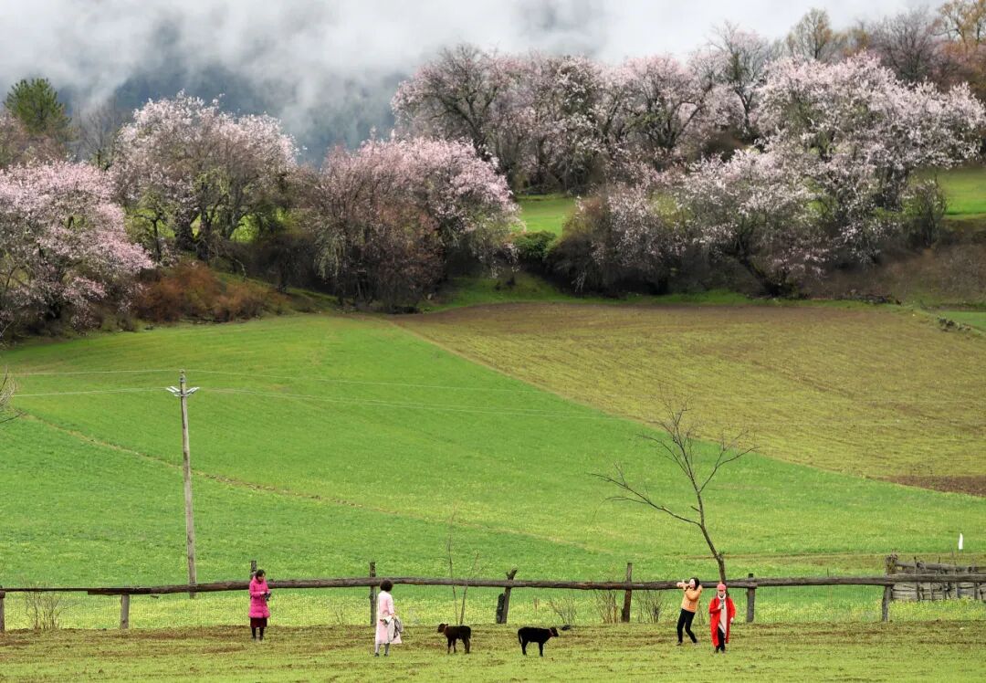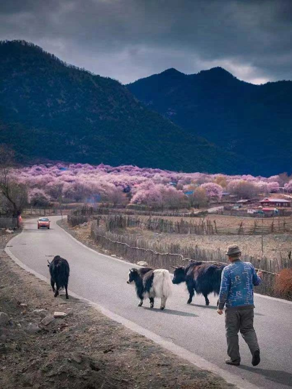 林芝的野桃花已如粉色的潮水般漫过山谷