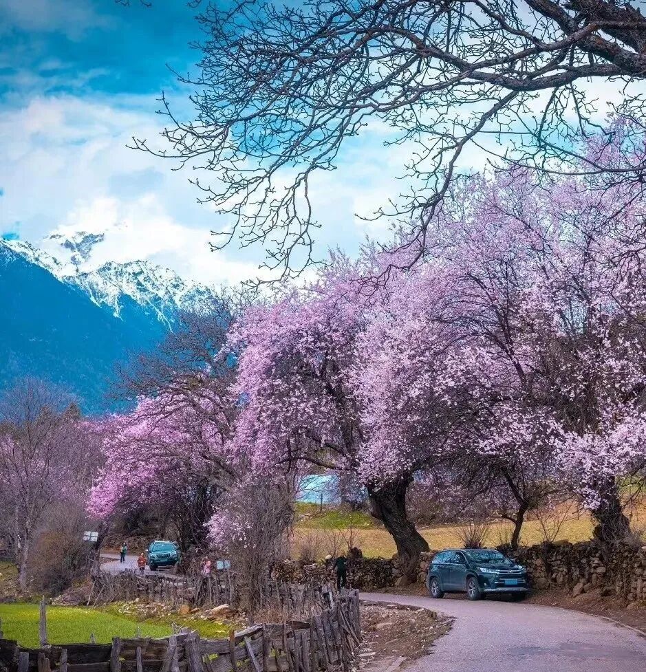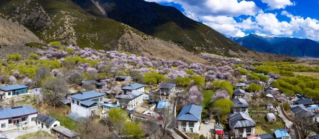每年3月底至4月初,村内1253棵百年以上野生桃树陆续绽放,绵延278亩,盛花期可持续约25天。自2002年起,林芝桃花旅游文化节每年在此举办,许多为人熟知的林芝桃花美景,正是出自这片土地。