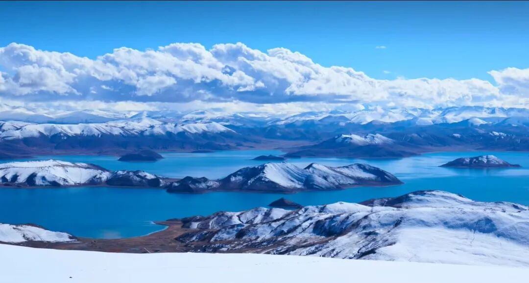 被称为“仙女散落的绿松石耳坠”的羊卓雍错,冬日里依旧湛蓝如宝石,褪去旺季的人潮,多了一份静谧与壮阔。