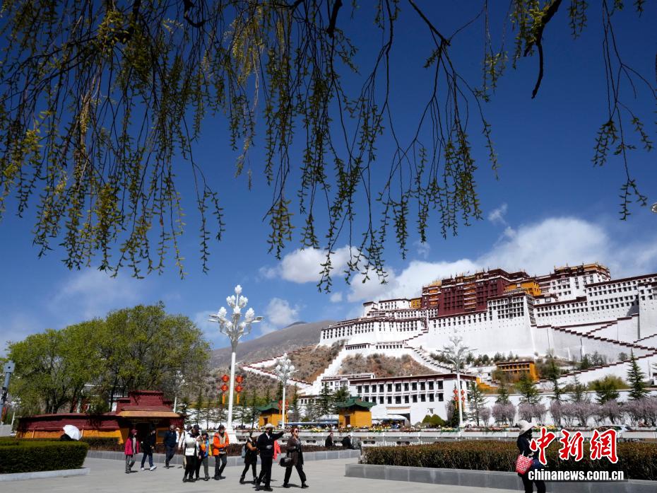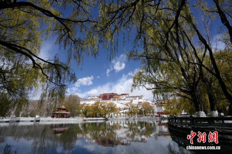 4月2日,布达拉宫脚下柳叶吐绿。随着气温回暖,西藏拉萨布达拉宫脚下春花绽放、柳叶吐绿,与古老宫墙相互映衬,构成一幅独具高原特色的春日画卷。中新社记者 李林 摄