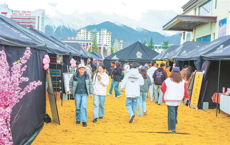 颇具人气的“寻梦桃花嘉年华”烟火市集。记者 刘枫 摄